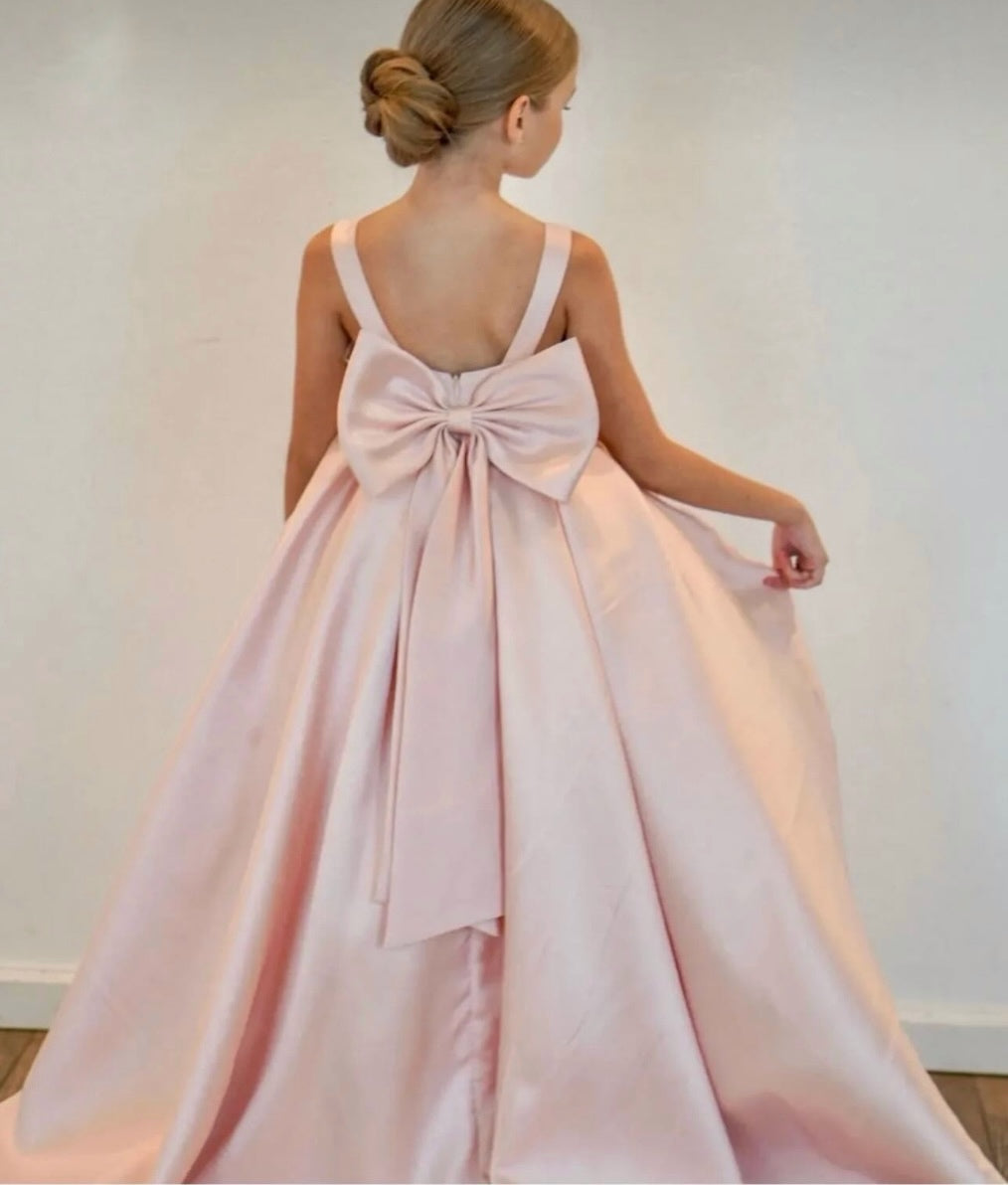Elsa Powder Pink Long-Train Girls’ Wedding Dress