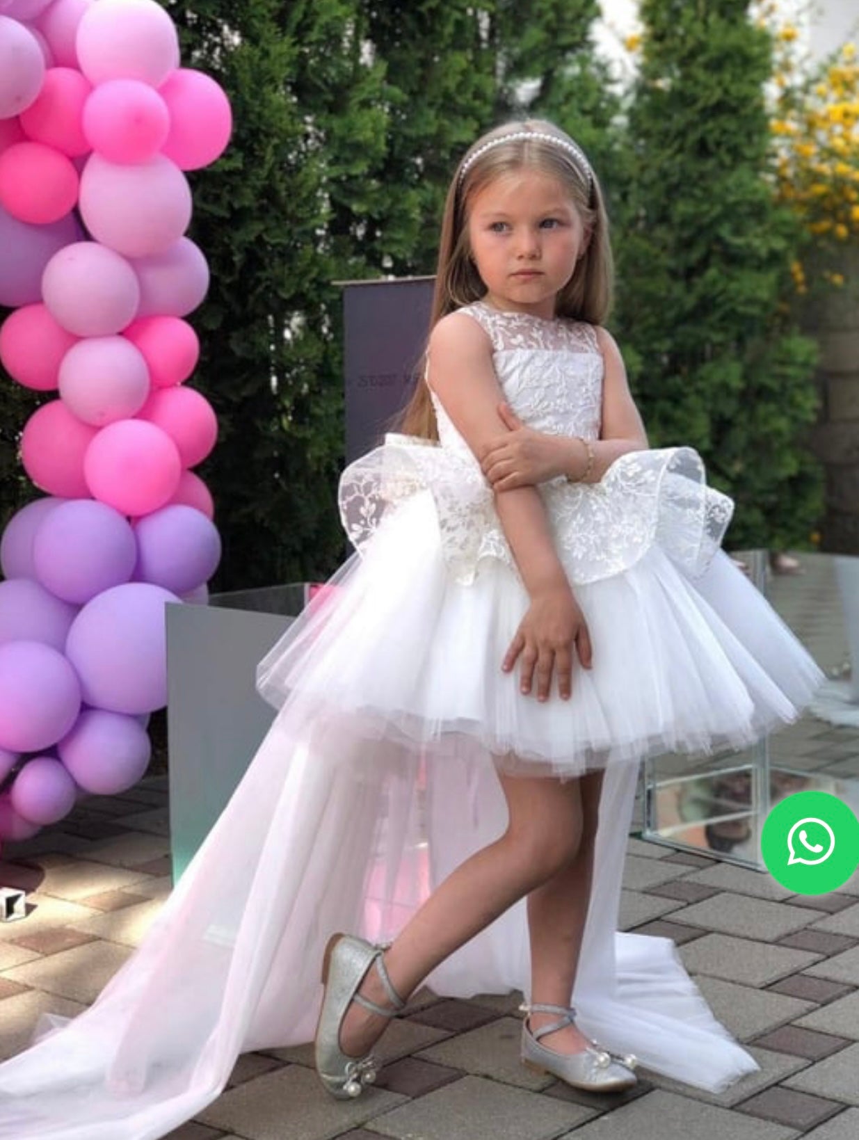 White Floral Detail Long-Train Dress