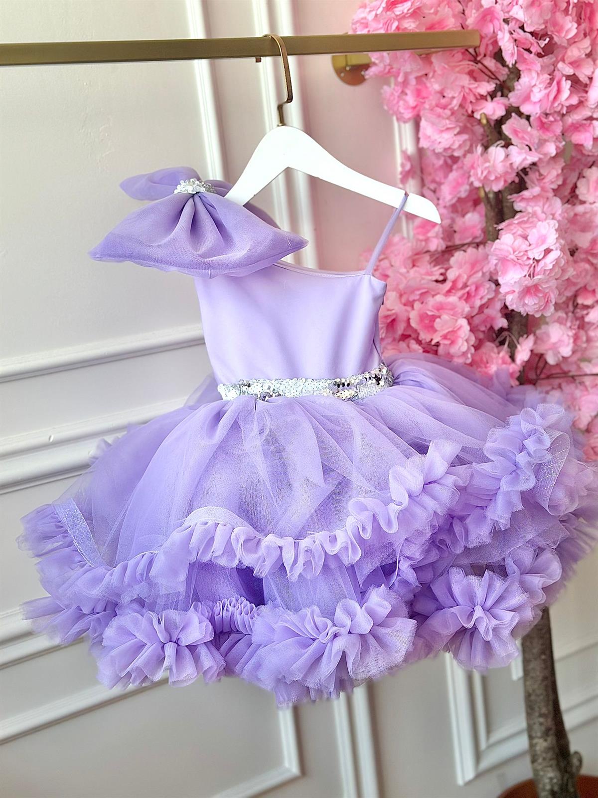Monica Lilac Sequin Belt Detailed Dress