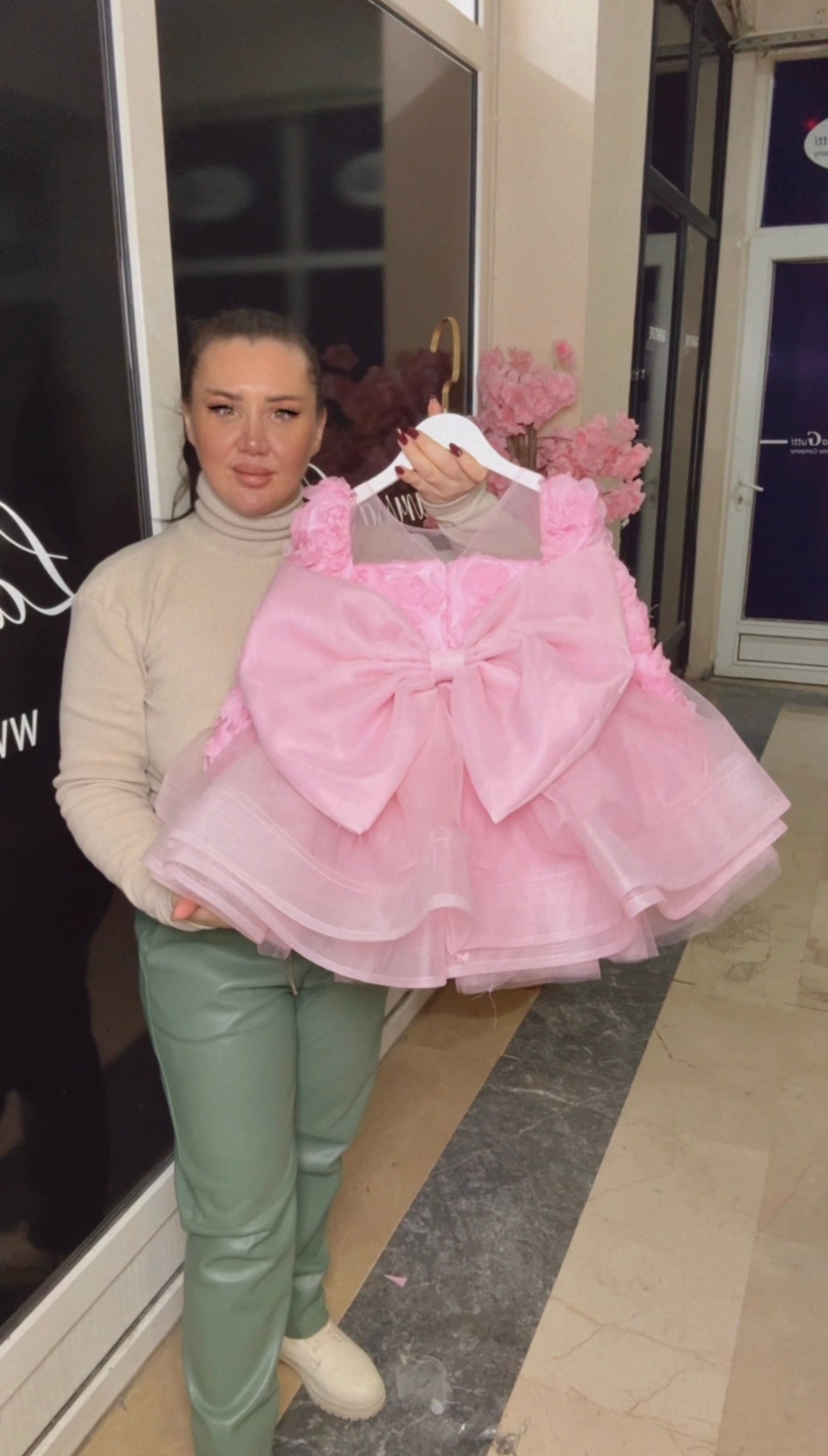 Elena Pink Girls’ Evening Dress with Rose Organza Detail