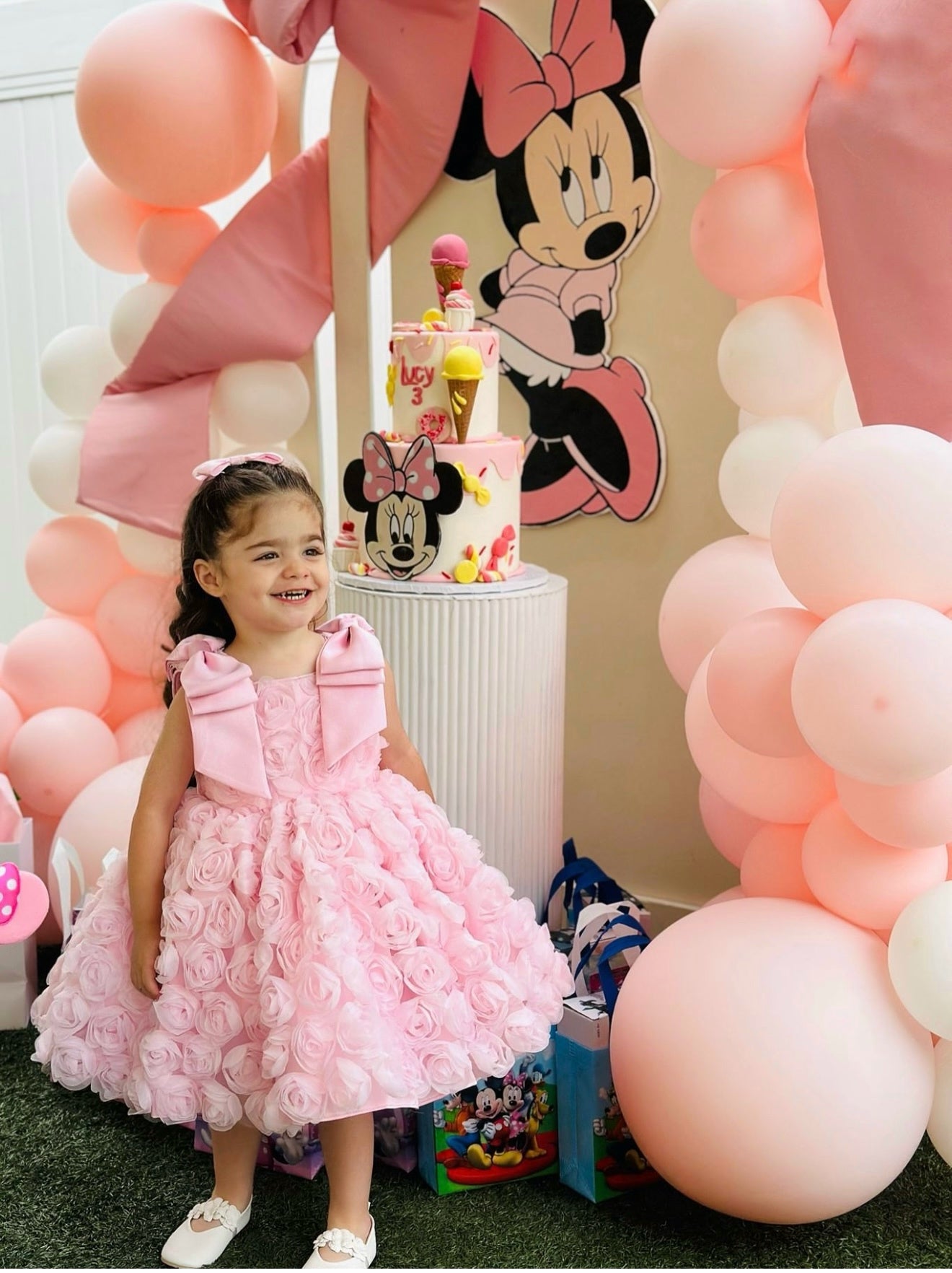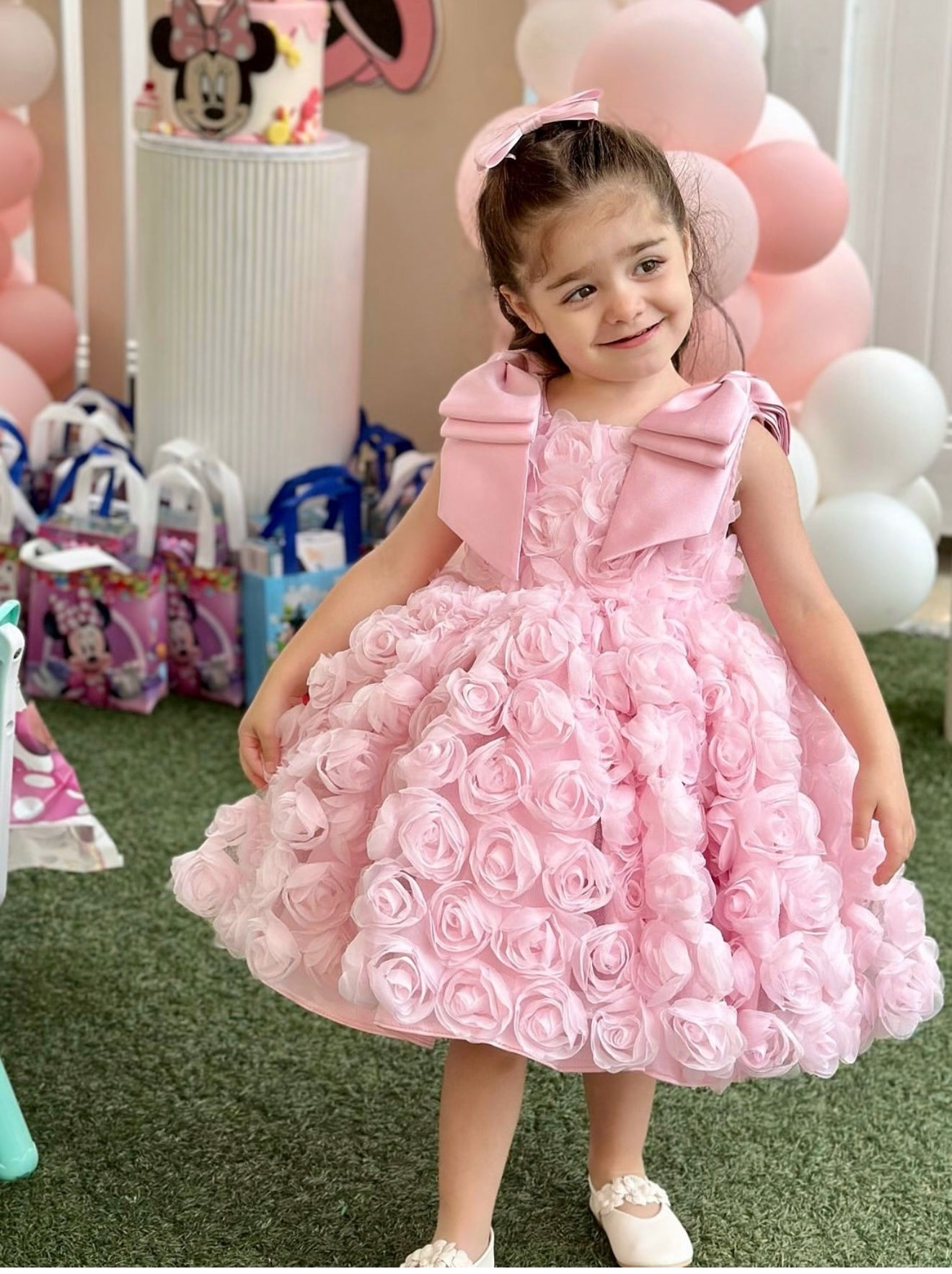 Olimpus Powder Pink Sleeveless Girls’ Evening Dress with Shoulder Bows