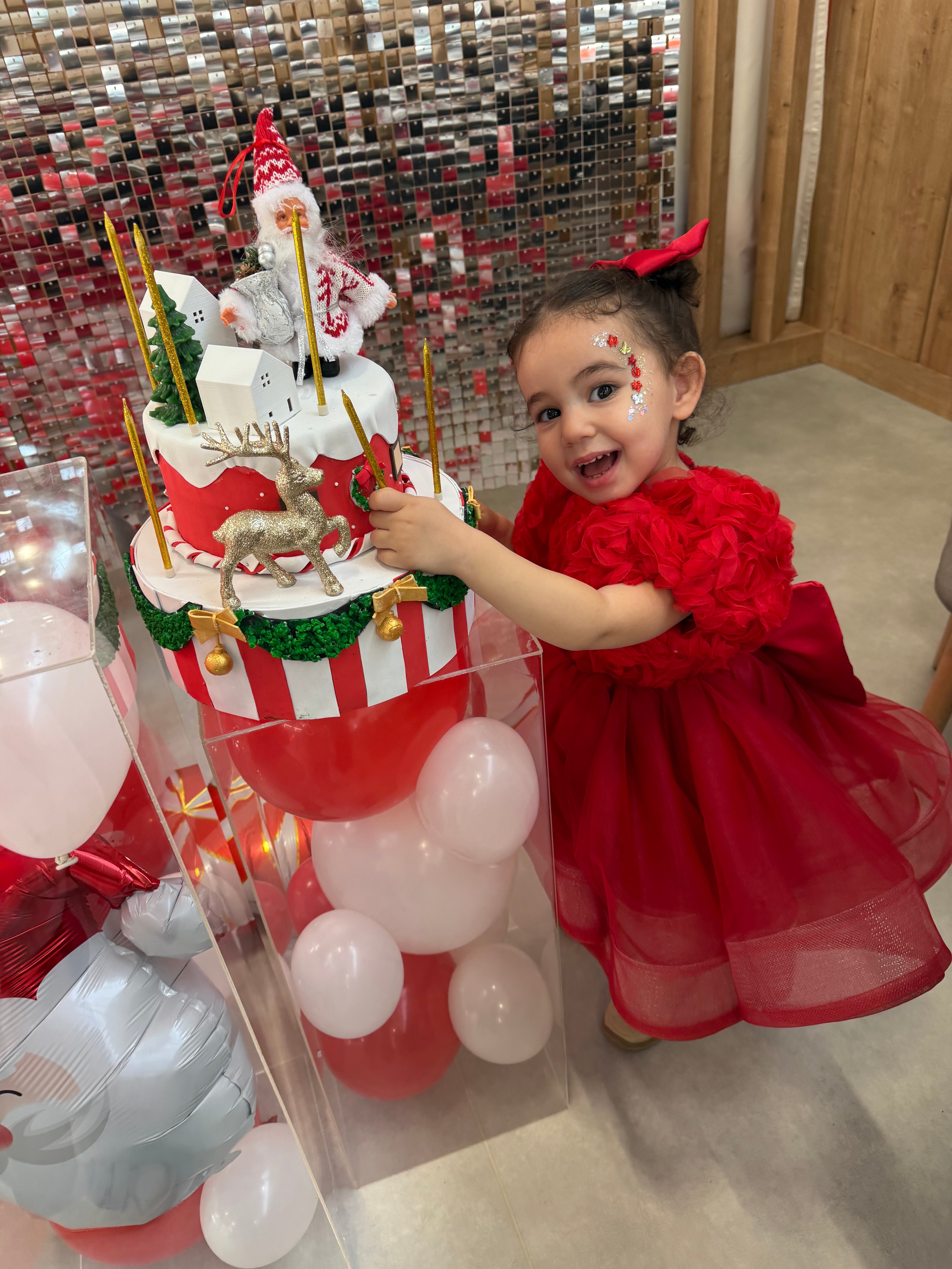 Perla Red Girls’ Evening Dress with Closed V-Neck and Rose Organza Detail