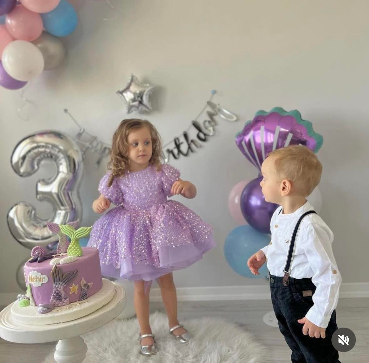 Features a tulle skirt starting from the waist.