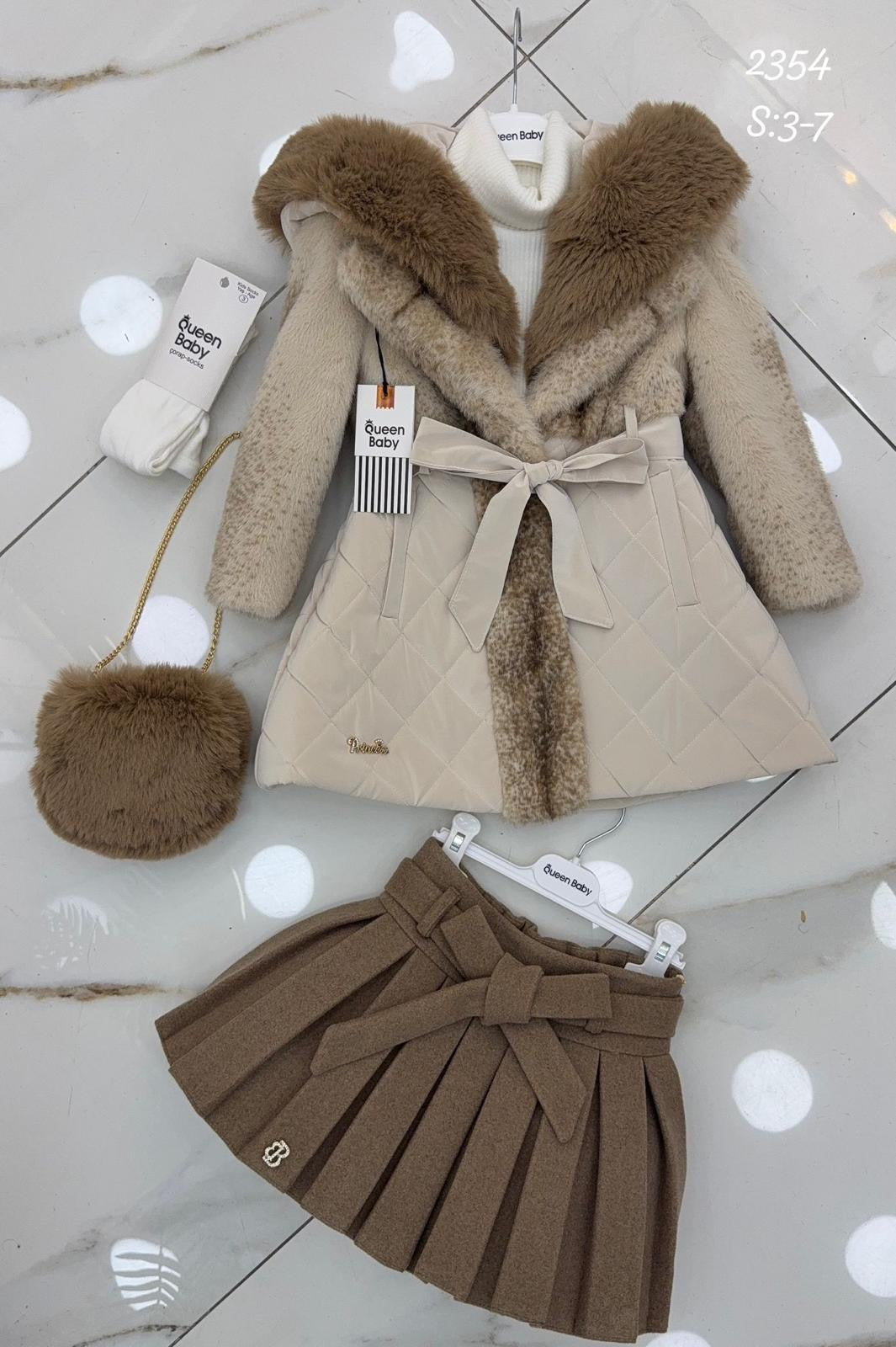Includes hat, socks, bag, skirt, and coat.